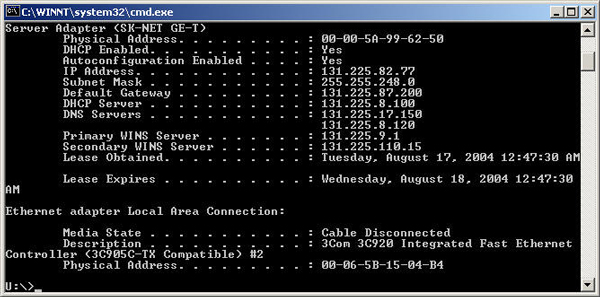 Windows XP/Visat/7 下用ipconfig命令查看网卡MAC地址