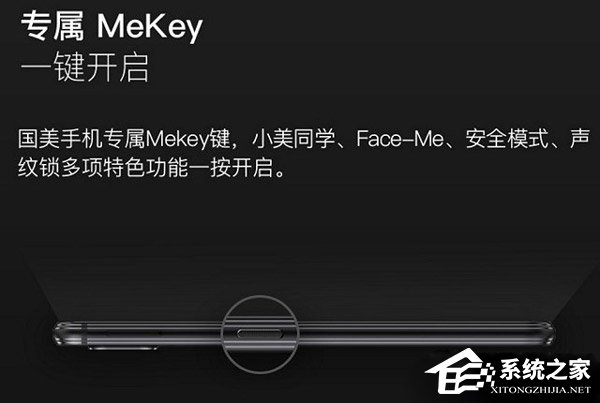 国美U9加入了一颗专属的“Mekey”按键,可以一键开启小美AI同学云因助手、Face-Me人脸识别、安全模式、声纹锁多项特色功能。