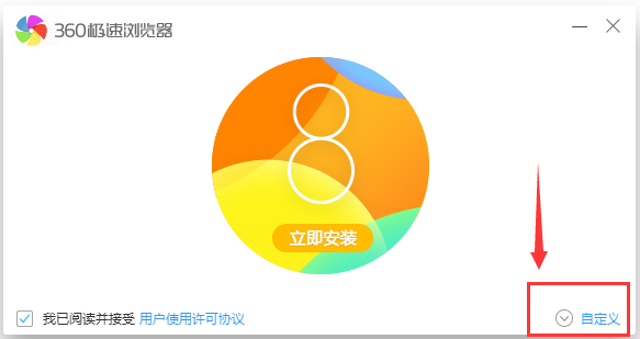 2、可以直接选择立即安装,也可以选择自定义安装,修改安装地址,选择或放弃一些选项,再点击立即安装